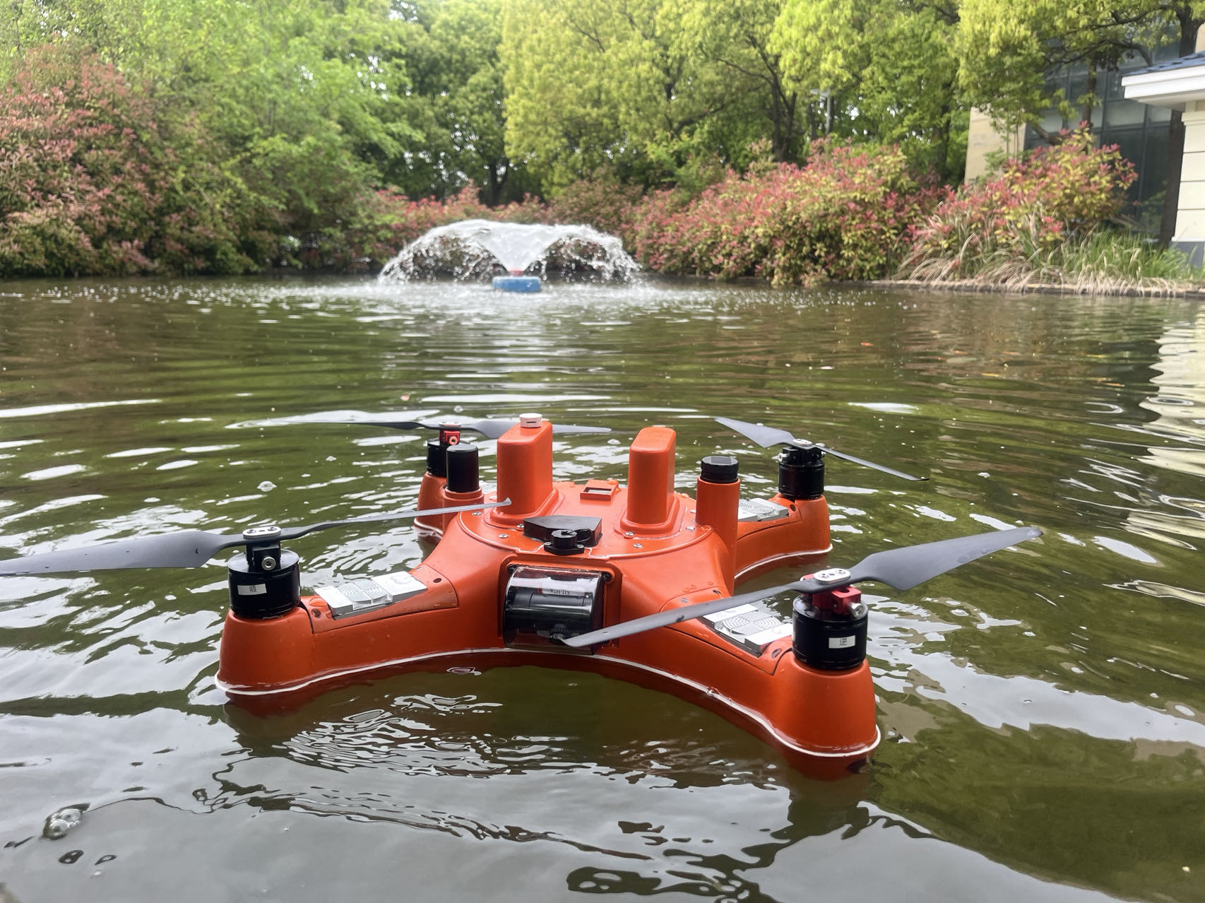 該兩棲式監(jiān)測飛行浮標,可從陸上或者船上飛行到水域任意監(jiān)測點,降落在水面后,飛機下腹的五參數(shù)探頭浸在水中進行測量,測試數(shù)據(jù)自動實時傳輸回監(jiān)控平臺或者手機;測試完成后,可將無人機召回出發(fā)點,或繼續(xù)飛行至下一監(jiān)測點繼續(xù)監(jiān)測。
