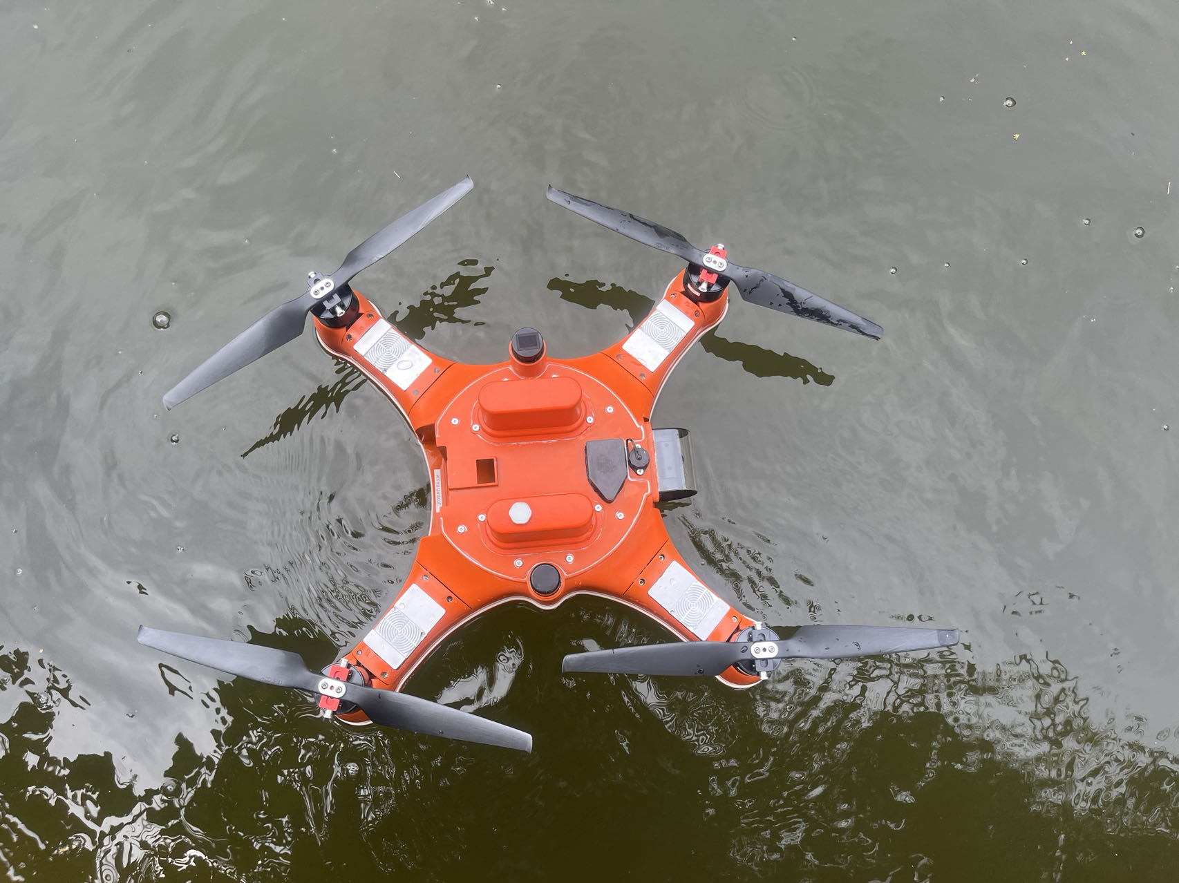 該兩棲式監(jiān)測飛行浮標,可從陸上或者船上飛行到水域任意監(jiān)測點,降落在水面后,飛機下腹的五參數(shù)探頭浸在水中進行測量,測試數(shù)據(jù)自動實時傳輸回監(jiān)控平臺或者手機;測試完成后,可將無人機召回出發(fā)點,或繼續(xù)飛行至下一監(jiān)測點繼續(xù)監(jiān)測。