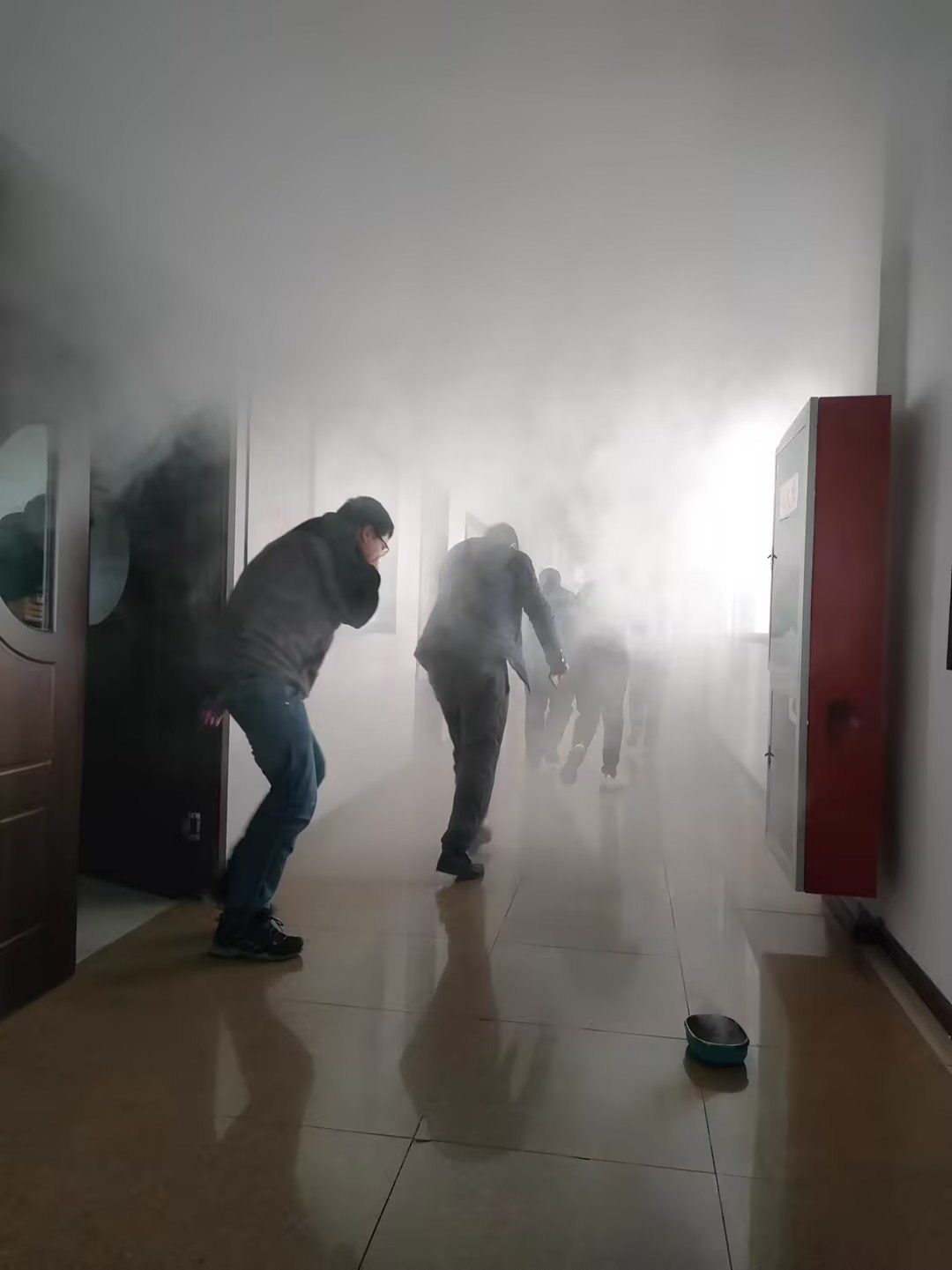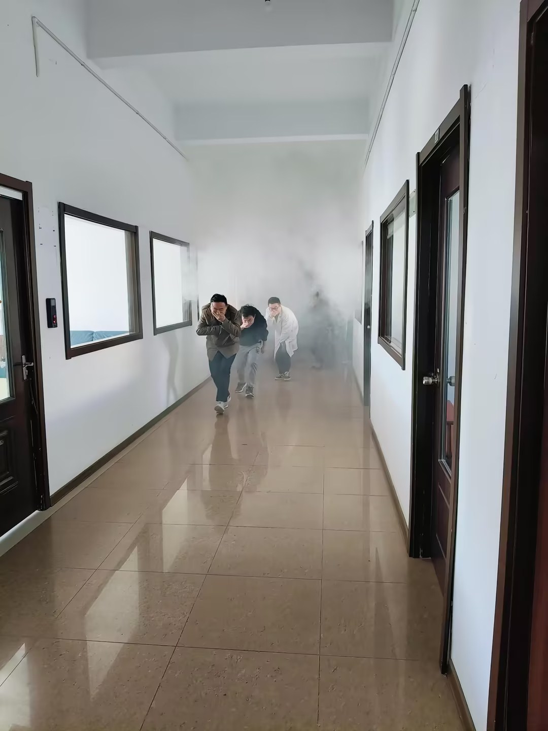 模擬辦公區(qū)域著火,辦公室人員遇火災(zāi)如何快速逃生。